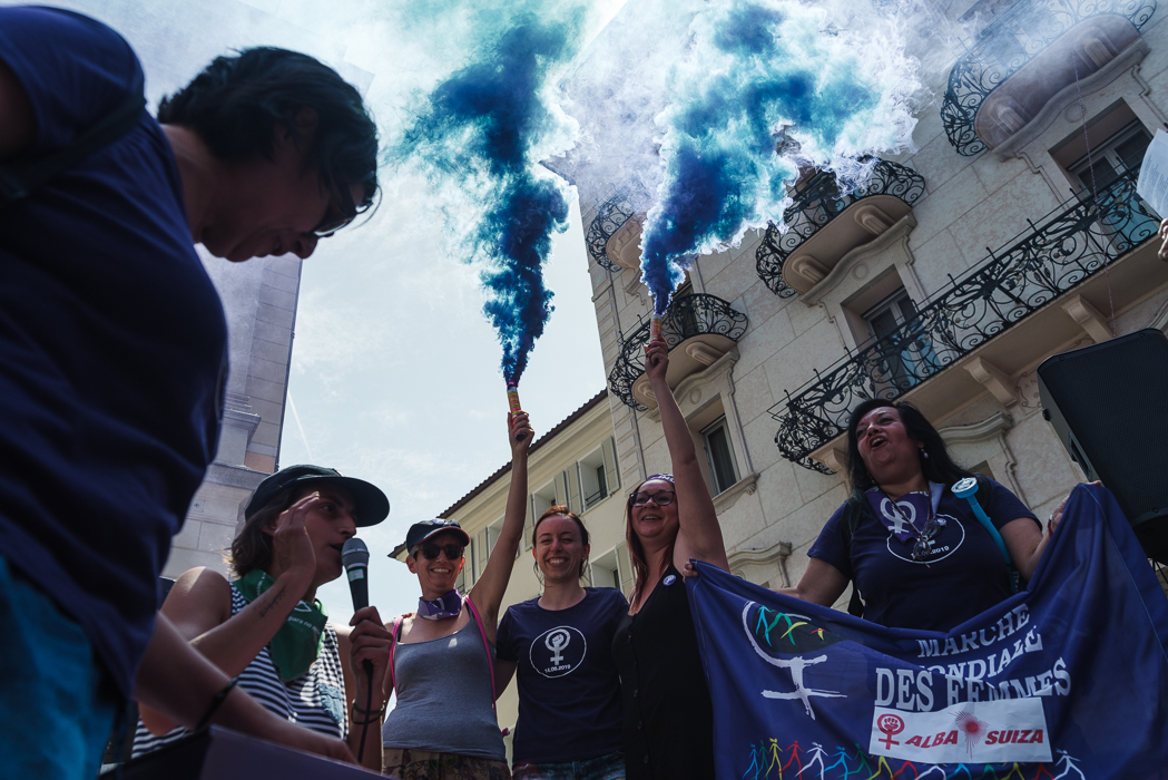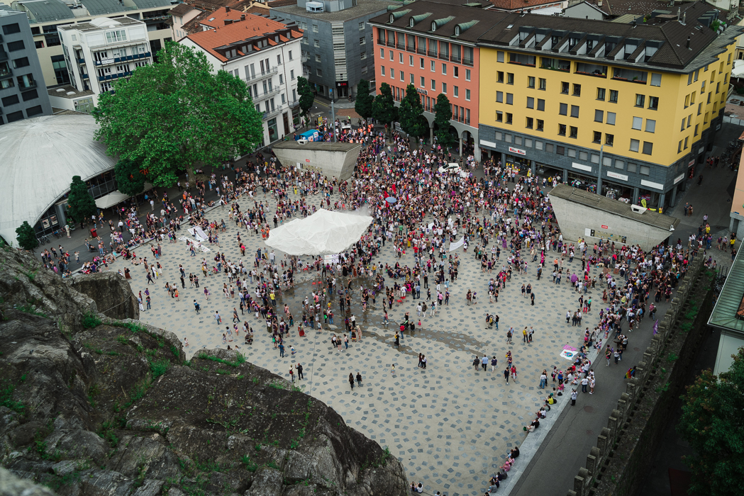 - The participants at the 2019 Women's Strike make themselves heard in Piazza Governo, Bellinzona (Frauenstreik Fotografin Sabine Cattaneo/freshfocus)