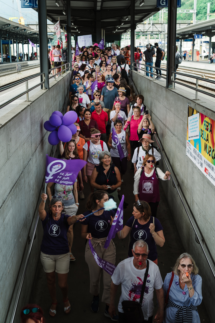 On June 14th 2019, Swiss women held a nationwide strike to address the pay gap and discriminations in the workplace and to denounce the sexism, violence and abuses women are still routinely subjected to in everyday's life. These pictures are from the cities of Mendrisio, Lugano and Bellinzona (the region's capital where the principal march was held).
