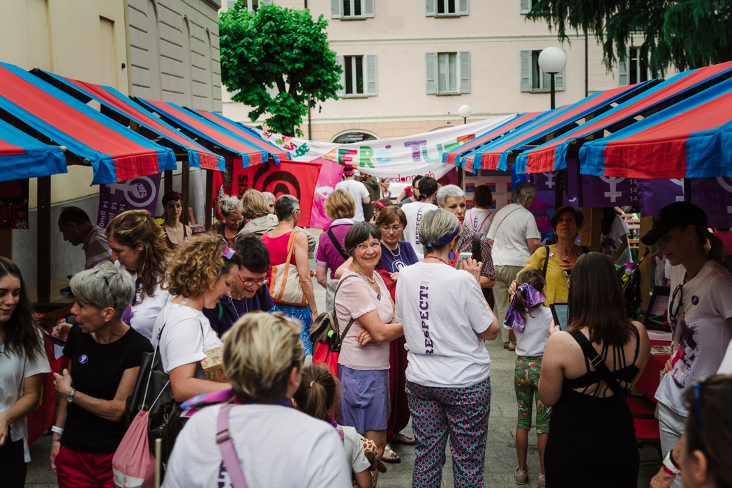 - A busy moment at the 2019 Women's Strike village in Bellinzona.