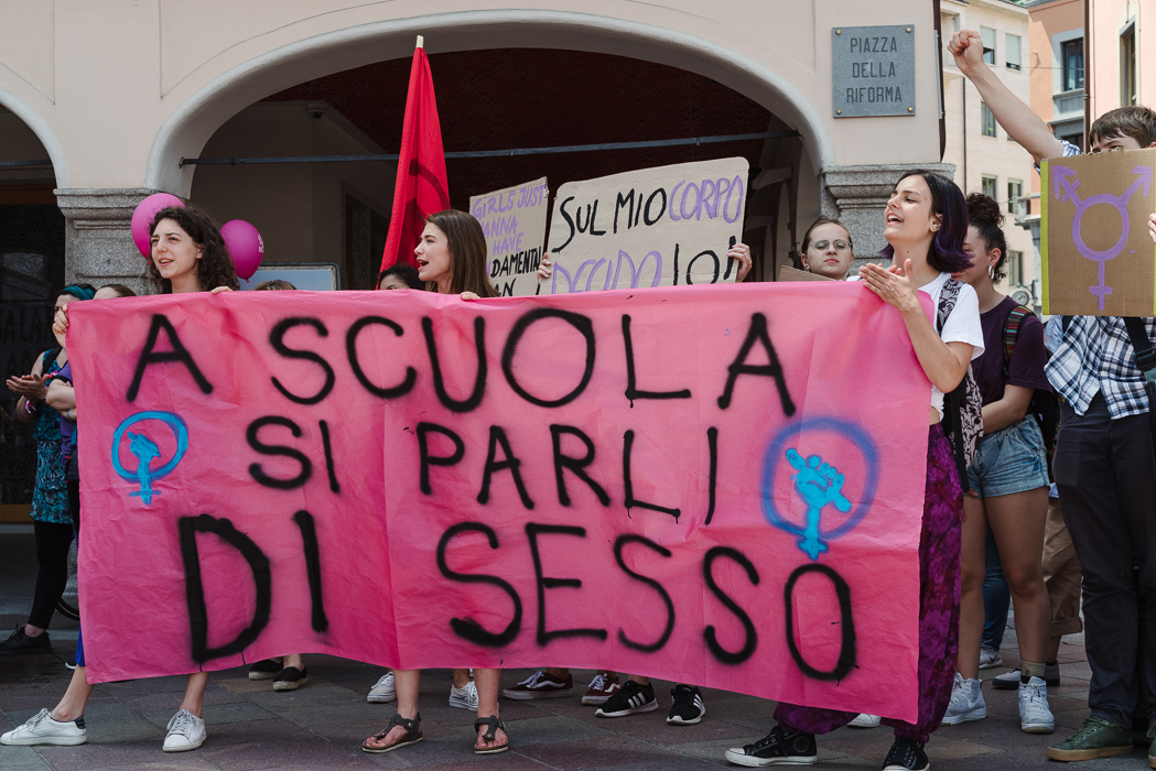 - A group of high school students in Lugano is showing a banner demanding sexual education in schools.