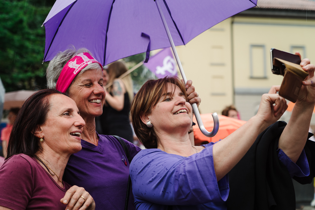 - Marina Carobbio, President of the National Council of Switzerland, takes a selfie under the rain with two other women during the 2019 Women's Strike march in Bellinzona (Frauenstreik Fotografin Sabine Cattaneo/freshfocus)